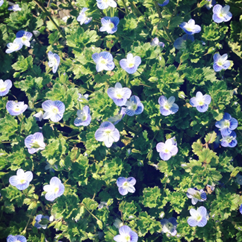 この青くて小さい花がかたまって咲いているところを見ると、春を感じます。