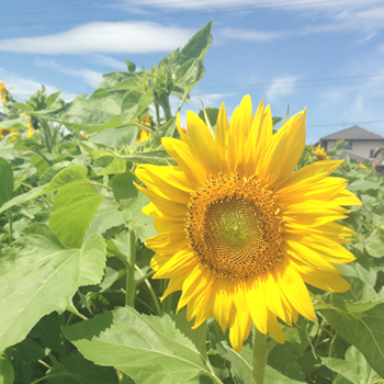 お日様に向かって全力でほほえむひまわりは健気だね。