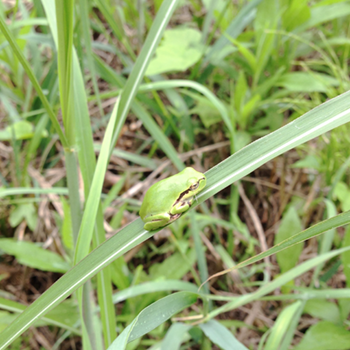 アマガエルがいたので写真を撮りました。苦手な人はごめんなさい。手足をひっこめてる姿がかわいいね。