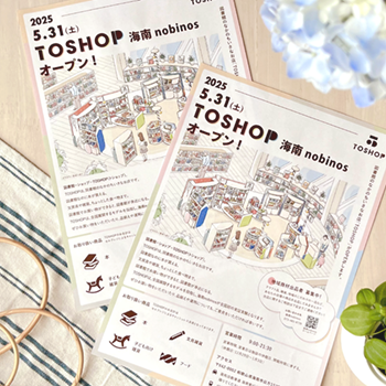 「TOSHOP 海南nobinos」告知チラシ